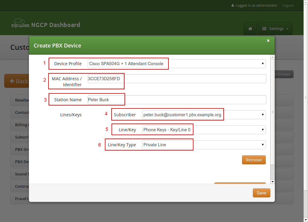 Once the PBX device is saved, you will see it in the list of PBX Devices.