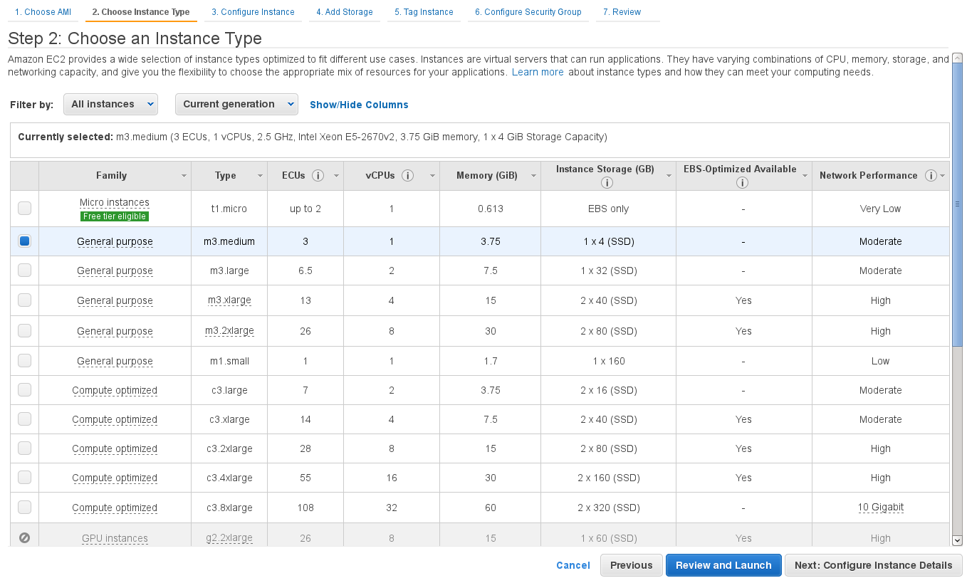 Select the Instance Type you want to use for running Sipwise C5 (recommended: >=2GB RAM):